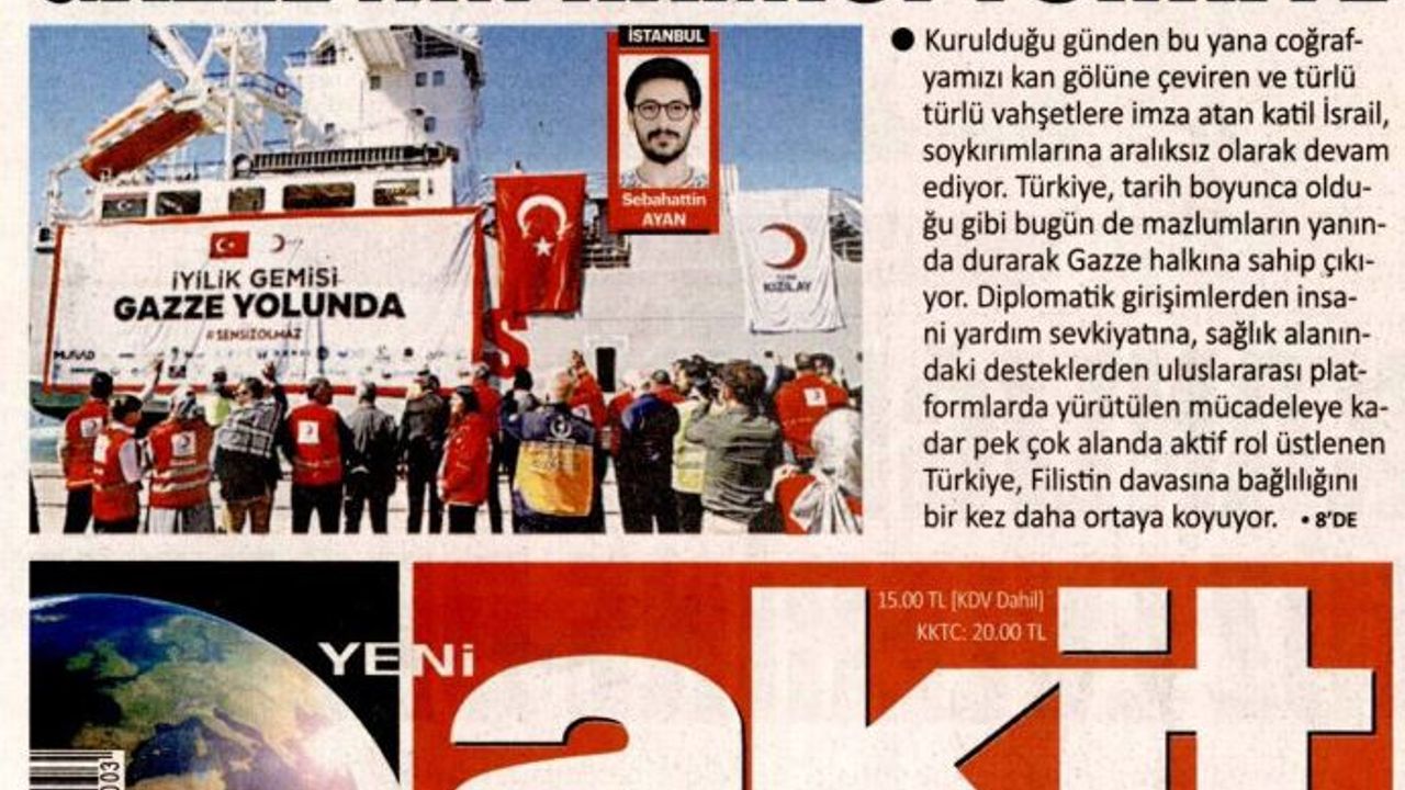 Akit gazetesinin sürmanşetinde Sebahattin Ayan imzasıyla yayımlanan “Gazze’nin hamisi Türkiye” haberi Milli Gazete’de eleştirildi. Ali Sertkılıç, “Gazze’de çocuklar açlıktan ölürken, binlerce şehit sokaklarda sahipsizken Türkiye’nin hamilikten söz edilmesi kara mizah olur” dedi.