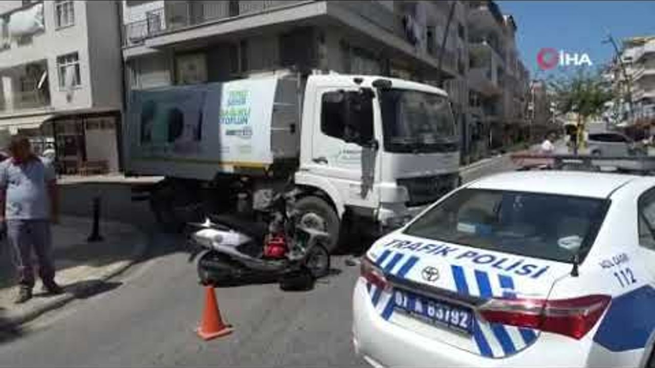 Antalya’nın Manavgat ilçesinde motosikletin belediyeye ait yol süpürme aracına çarpması sonucu meydana gelen kazada sürücü yaralandı. Kaza anı anbean güvenlik kameralarına yansıdı.