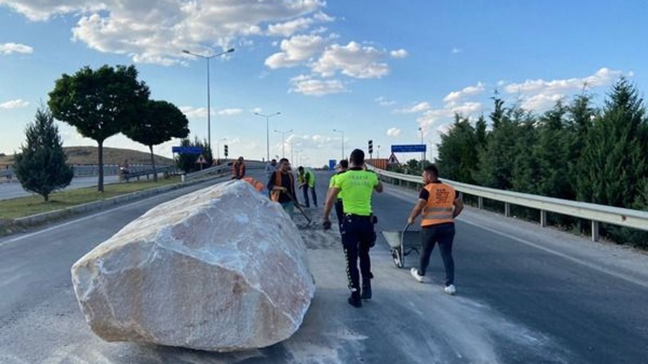 Olay, Afyonkarahisar-İzmir karayolu ANS Köprülü Kavşakta meydana geldi. Edinilen bilgilere göre, plakası ve sürücüsünün ismi henüz belirlenemeyen tırdan yola yaklaşık 2 metre uzunluğunda ve 1 metre genişliğindeki mermer blok düştü. Olayın hemen ardından karayolundan geçen sürücüler yol ortasında duran devasa mermer bloğu görenler önce şaşırdı ardından polisi arayarak yardım istedi. İhbar üzerine bölgeye gelen polis ekipleri ise karayolunda güvenlik önlemi alarak, yoldaki trafiği tek şeritten sağladı. Mermer blok sonrasında bölgeye çağrılan vinç yardımı ile bir kamyona yüklenerek düştüğü yerden kaldırıldı. Polis mermer blokun hangi araçtan düştüğünün belirlenmesi için inceleme başlattı.